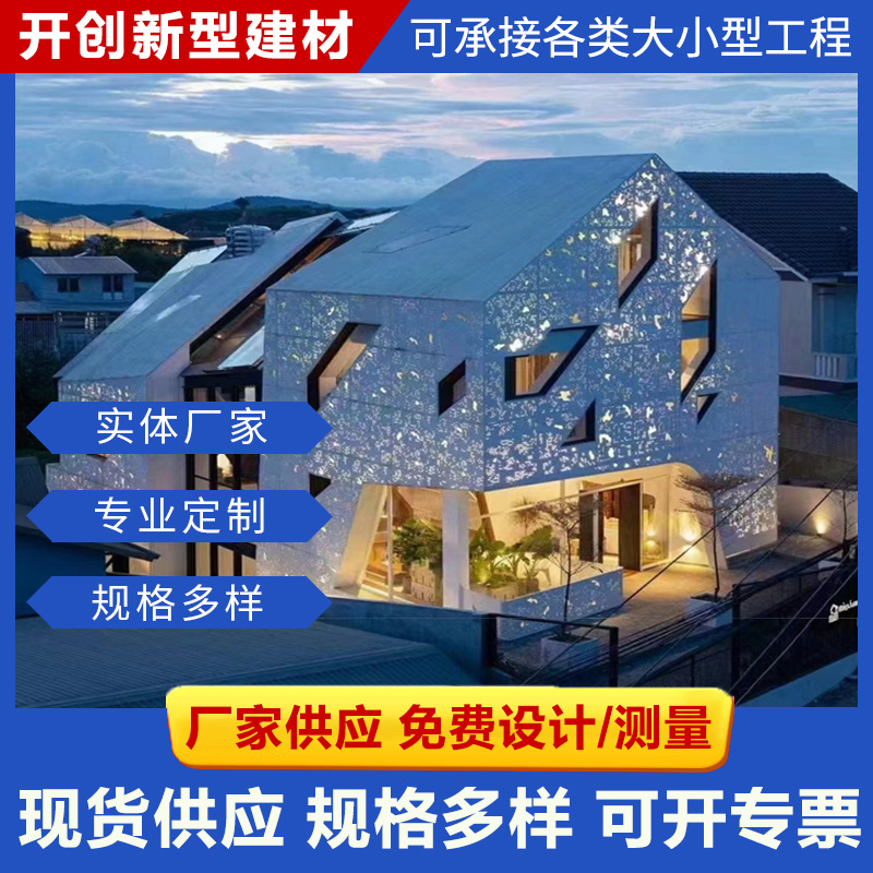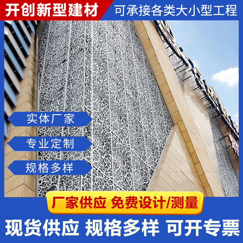 查看更多定制拉網鋁單板/木紋鋁單板/幕墻鋁單板/鋁方通系列/沖孔鋁單板/雕花鏤空板/長城鋁單板/異形天花定制/圓柱鋁單板等產品